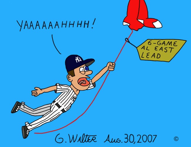 The Red Sox thought the Yanks buried themselves 13 1/2 games back in the beginning of the season. They dug themselves out to six games behind with four games left between the two teams to play. Boston had their rotation set to perfection this week with Daisuke Matsuzaka, Josh Beckett, and Curt Schilling. "The Yankees never go away," they grumble in the bars up in Beantown, casually looking over their shoulder a bit more frequently now than they did in the month of May. Even to assure themselves a tie for the AL East crown, the Bombers would have to sweep the remaining games plus some key Red Sox losses. A small thread of hope, yes, but a thread is enough. The Yankees never go away.