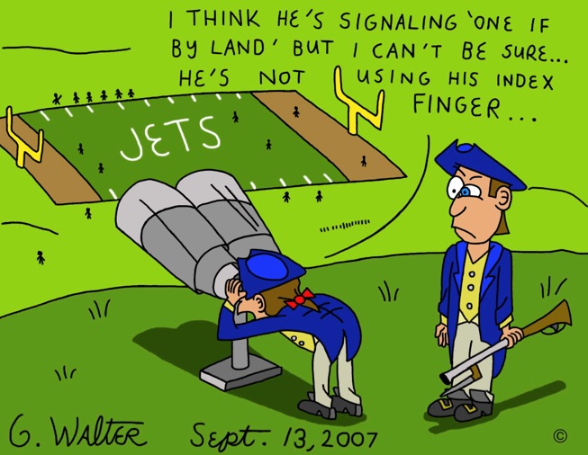 What you can't understand is why Belichick would do such a thing? Why would the man who is considered to be the best in the league, and the coach of the team considered to be among the elite, who has superior people on his staff, and three Super Bowl rings for cryin' out loud take such a stupid risk to win the first game of the season against the Jets who are 50-50 to make the playoffs this year? Is it just a simple case of insecurity? Maybe Belichick's ego just couldn't take being beaten by his former protégé, maybe he had to rub his former pupil's face in the turf one more time since the Pats eliminated the Jets in the wildcard last season, or maybe he just couldn't stand being shown up by the Mangenius, so he had to win at any cost.