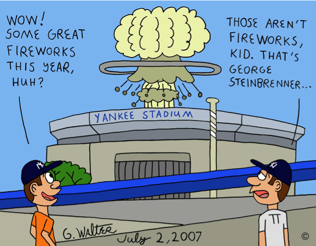 It's at times like these, with the Yankees in freefall, in crisis mode, and in need of a good swift kick in the pants, that we sportswriters turn to owner George Steinbrenner for his wonderful word of wisdom, inspiration, and motivation that quickly fills up the backpages of the newspapers and that we can post on the web. It used to be that when the sporting news was slow (like it is now) with the Bombers bombing and the Mets maintaining their lead in the NL East, you could call up the Boss to get a quote, a story, and a rant that would keep you going for the rest of the week. The truth is, he probably enjoyed the publicity.