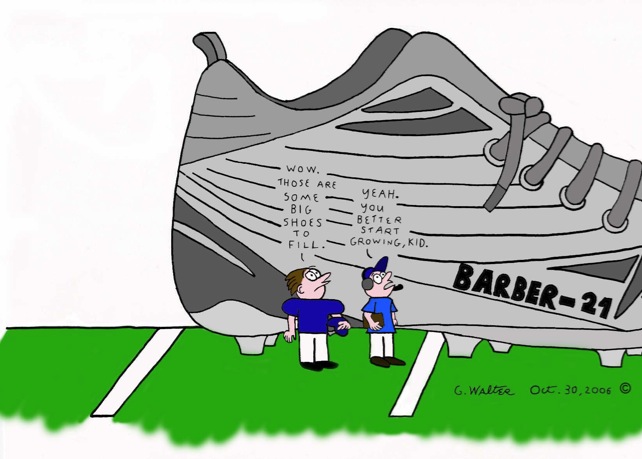 No doubt Tiki's there already, as he is a shoo-in for the Hall of Fame. The stats he's amassed over his 10-year career are amazing. He has gained 9,434 rushing yards, setting a team-record in 2005 with 1,860 (he was second in the NFL, 20 yards behind Seattle's Shaun Alexander). Barber was 30 during the 2005 season, making him the oldest player in history to rush for 1,800 yards. Tiki also had 530 receiving yards, making him the only player in NFL history with at least 1,800 rushing yards and 500 receiving yards in the same season. His 2,390 total yards were second most in NFL history.