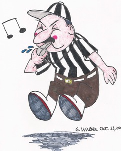 My editor had e-mailed me and questioned what the note was doing there - the whistle has to have a sound, right? - so I removed it and thus the “Geoff the Ref” icon was born.
