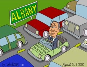 I heard on the radio that Mayor Michael Bloomberg’s congestion pricing plan has stalled in Albany, so I had to draw this cartoon immediately.