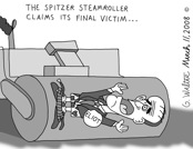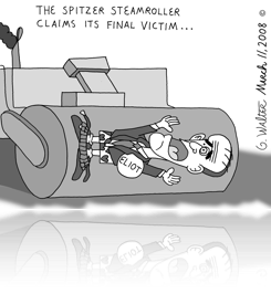 After NY Gov. Eliot Spitzer claimed he was a f-ing steamroller, it has always played a part in cartoons involving him in my view. Now it looks as though he’s going to be flattened and forced to