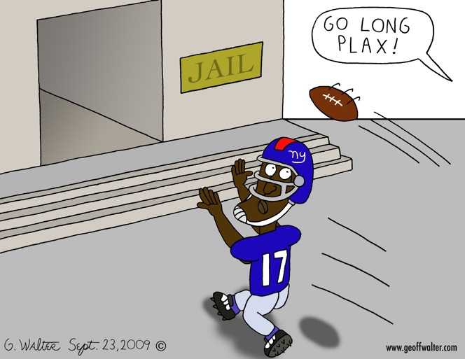 Plaxico Burress is going away for a while, so here’s his farewell parting cartoon... It’s just another sad tale of how the mighty have fallen as Burress went from catching the winning touchdown in Superbowl XLII to being a disgraced prison inmate in 19 months after accidentally shooting himself in the foot at a nightclub.