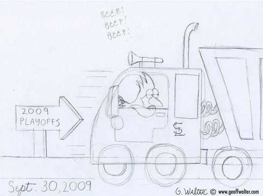 The cartoon originally was to have the Cardinals back-in to the playoffs by virtue of a loss, and I had drawn it that way as you can see to the right.