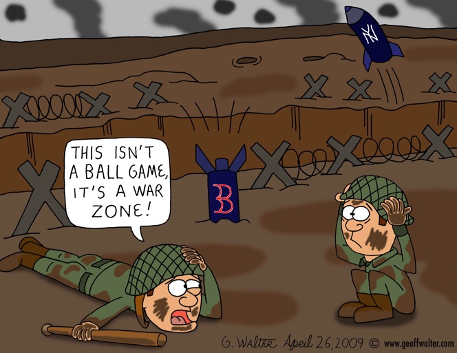 In light of the game against the Red Sox on Saturday where the leads kept changing back and forth and so many home runs were being knocked out of Fenway Park, I remarked that the game was more like a battle or a war than a baseball game, and chose to draw the imagery up.