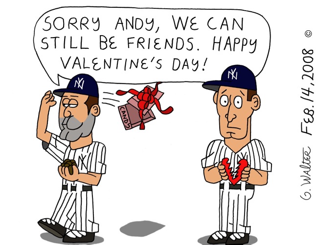 Since it was Valentine’s day my editor wanted something that celebrated the holiday. What could be better than Roger Clemens breaking up with Andy Pettitte after the latter’s testimony?